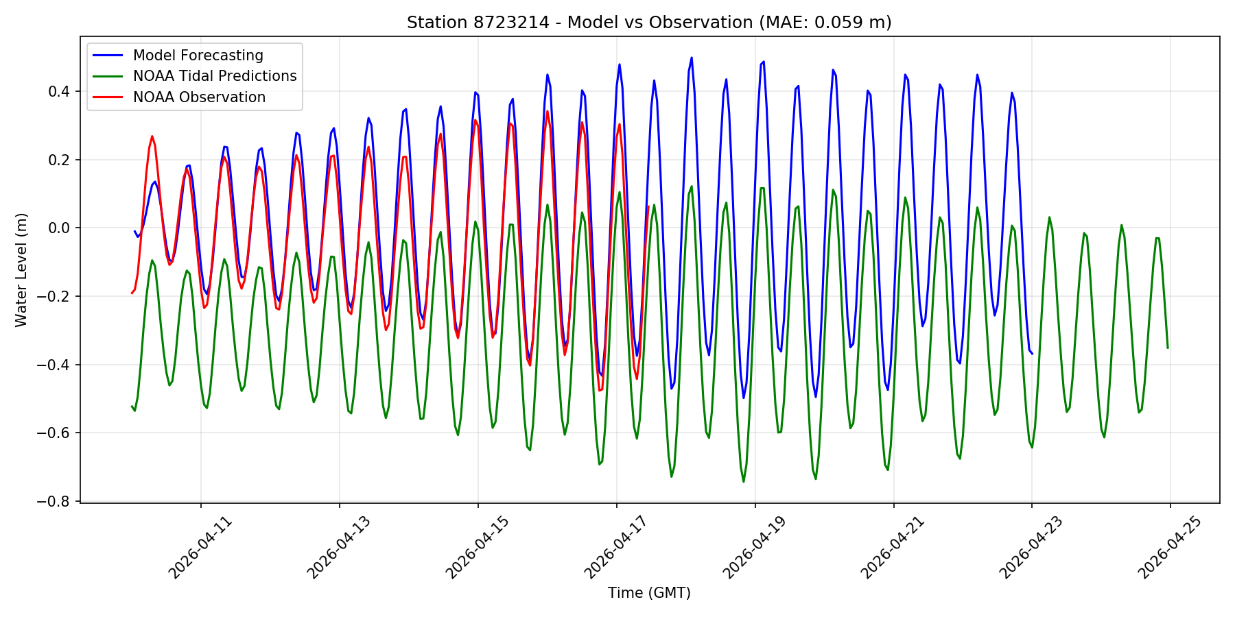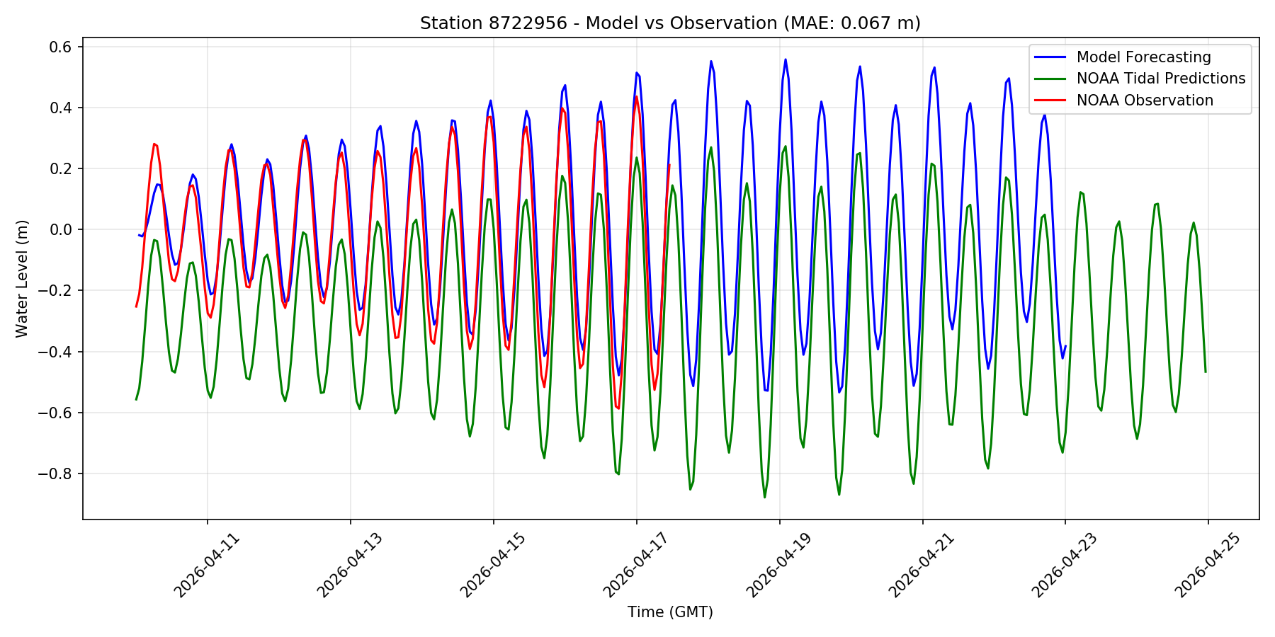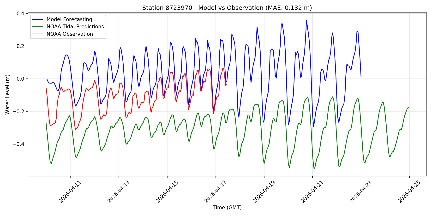 Disclaimer: This is an experimental web portal for graphic visualization of the operational and experimental results from the storm surge and tide forecast systems being developed and tested by our lab at FIU using SCHISM.