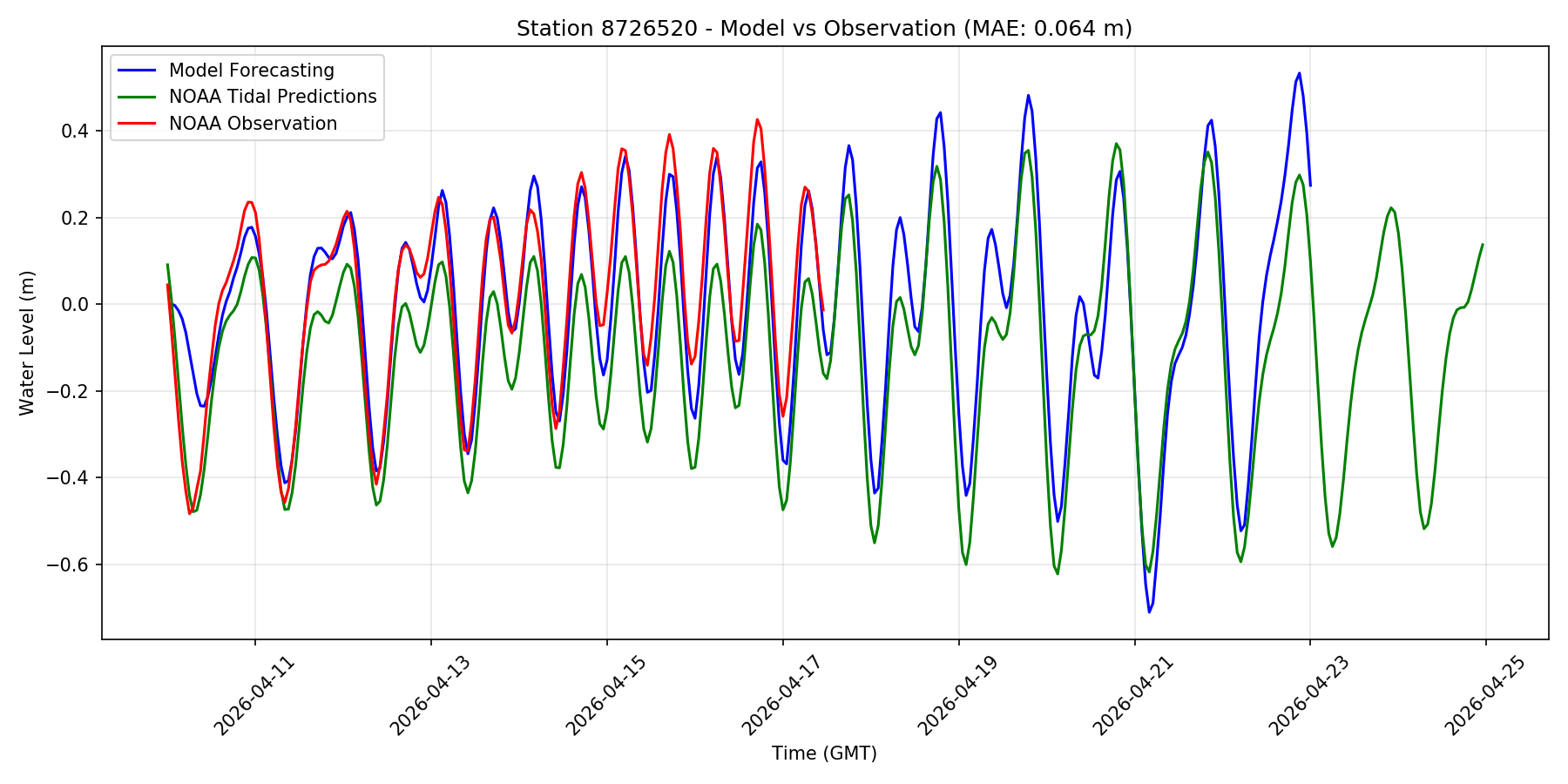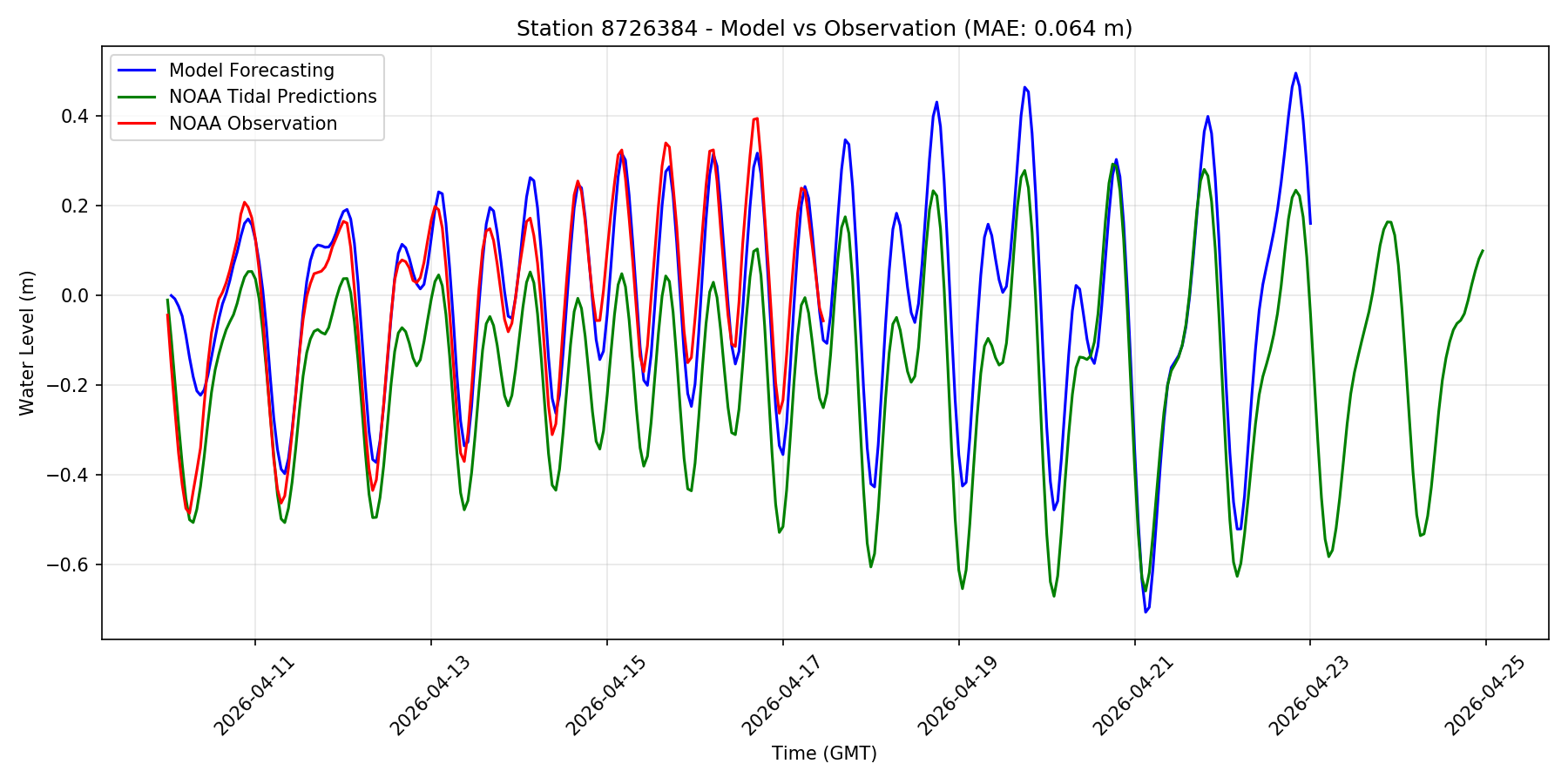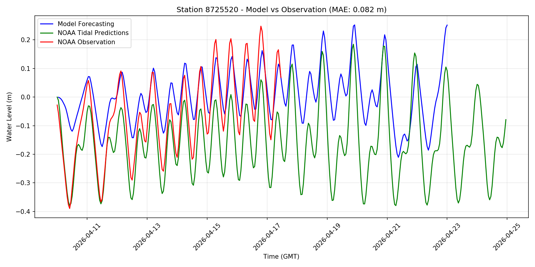 Disclaimer: This is an experimental web portal for graphic visualization of the operational and experimental results from the storm surge and tide forecast systems being developed and tested by our lab at FIU using SCHISM.